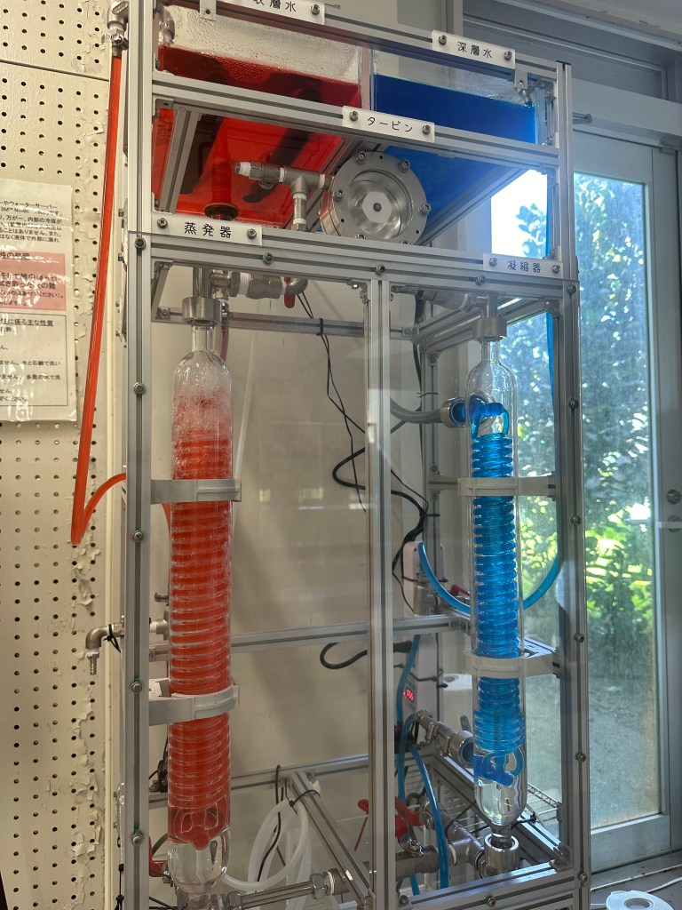 Being able to see Yamashiro’s artworks in galleries/museums in Tokyo and Naha as well as visiting the OTEC facility on Kume Island has sparked many questions for me to wrestle with in the coming months as I write up my research. On the one hand, using seawater as an energy resource could potentially greatly contribute to the resource independence of Okinawans. On the other hand, large-scale extraction from Okinawa’s oceanic territories could simply intensify the exploitation of the region. After my swim in the warm and salty waters of Okinawa, it is now time to dive further into these complexities of ocean energy cultures and histories.